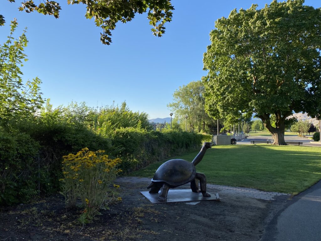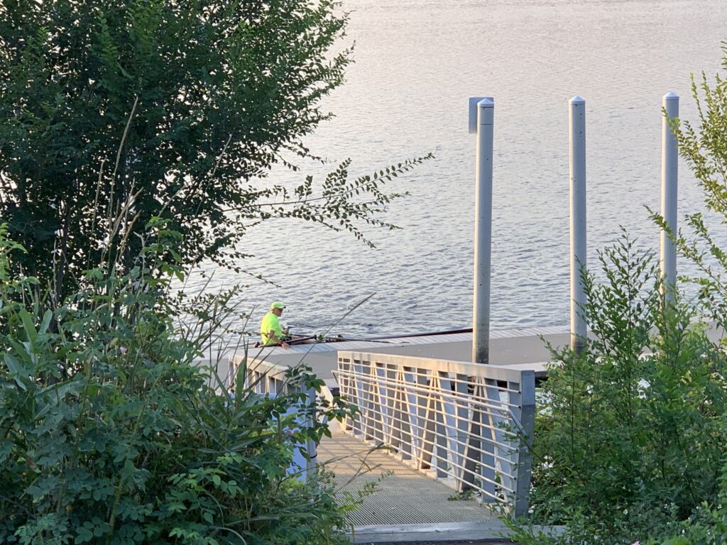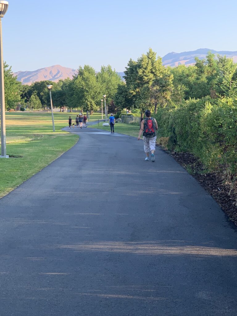 From Riverside Walkway at 9th St, I mostly head north but mom often goes south。I walk a total of 3000 steps in about 30 min while mom 8000 steps in an hour.,