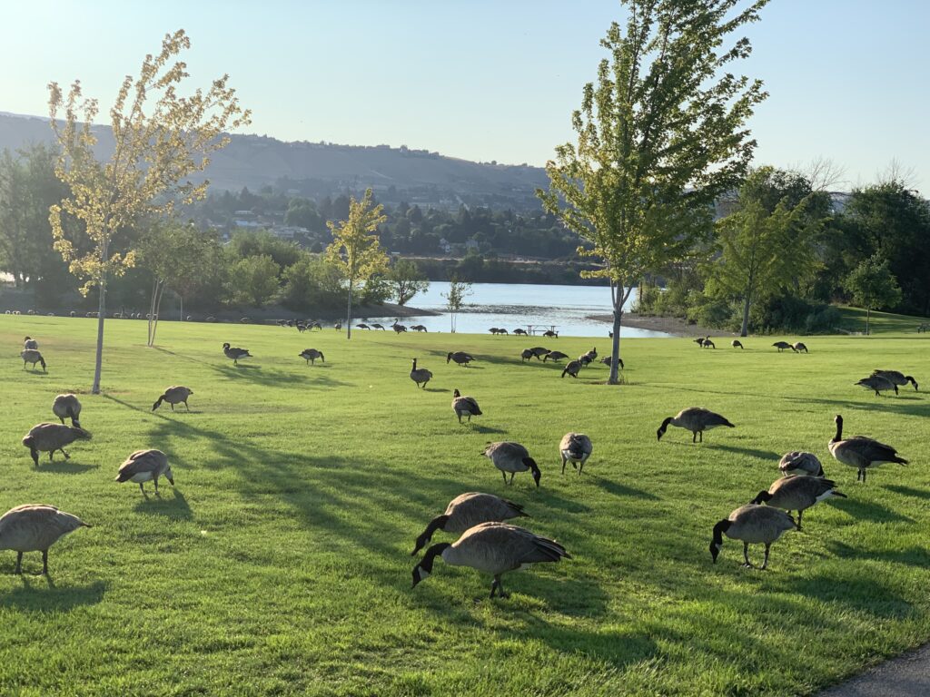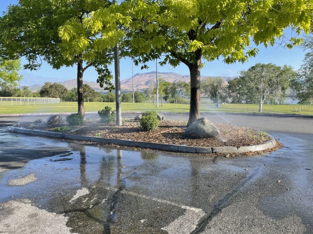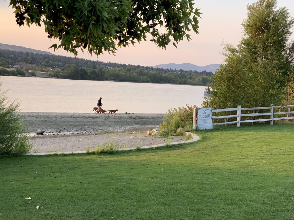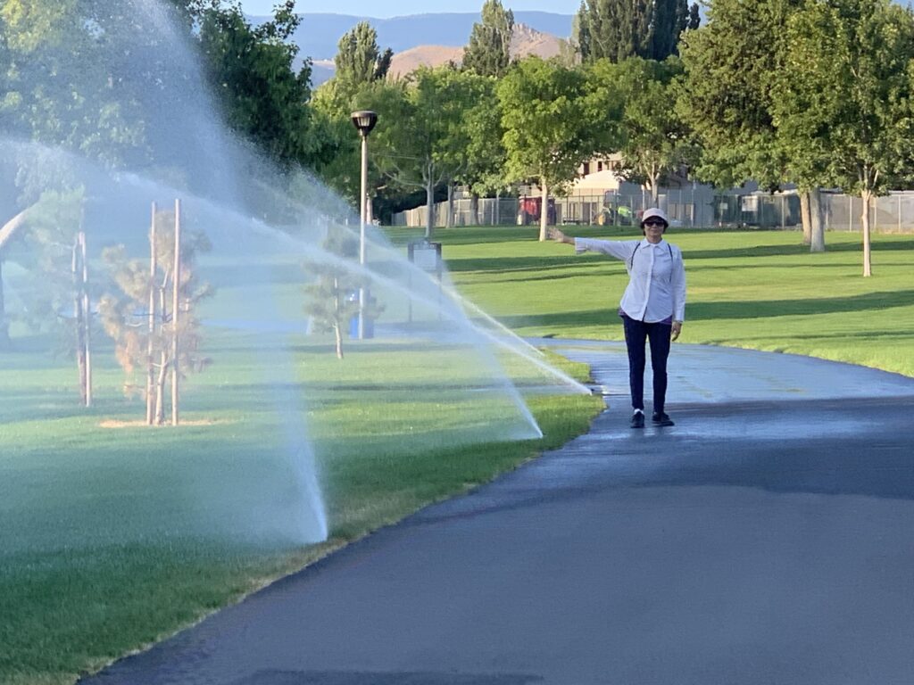 Notwithstanding being right by the river, grass needs watering to survive the hot summer.