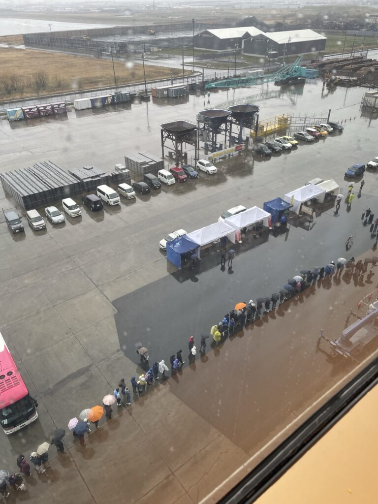 Cruise ships rarely visit Muroran. Locals organized a welcoming party for the occasion.