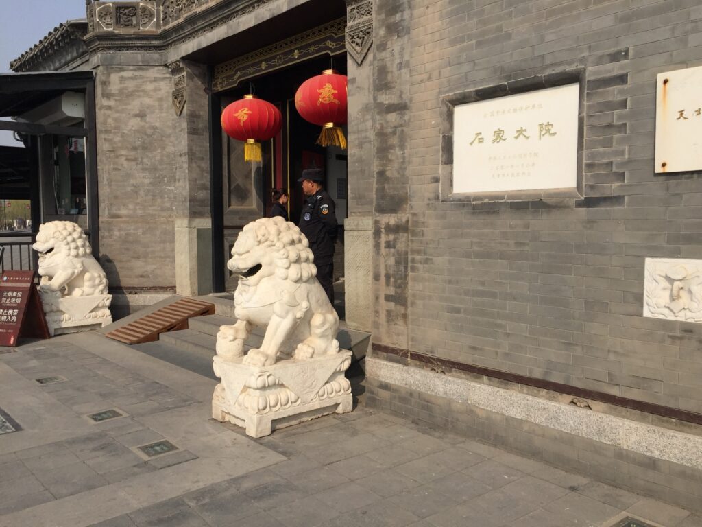 I was prepared for the worse the next day on our tour to 天津. My heart sunk when told that our first visit was, God forbid, another local family in town. I didn’t expect much even the new guide showed up appearing to be quite good. Anyone would be an improvement after the loser we had yesterday. However, the guy was different. He was in control the moment he introduced himself. He spoke perfect English, been in tourist business for 14 yrs, and it shows. His name? Terry Shih. Not the shihs of the common variety but the rare rocky Shih (石) same as mine. Huge odds against this to happen. More to come as another Shih was about to join force with Shih the tour guide and Shih the tourist (me). The high light of our visit is the prominent Shih family residence in town (天津石家大院). Near the entrance, there is a giant jade cabbage, which must cost at least its own weight in gold (in tons?). According to Terry, the cabbage is positioned strickly based on ying and yang theories to ensure that money would be flowing into the house. It must have worked as evidenced by the riches the Shih family had accumulated. As we walked through the family compound, marveling at the magnificent design of the old living quarters, we were all awed by the extravagance and grandiosity of the Shih family. Terry insisted he was not related to the owner and had nothing to do with picking the Shih house for the tour. Nevertheless, he and I agreed that all of us Shihs most likely came from the same clan way back in time. And very much intrigued by this happening of the unusual 3-Shih encounter.